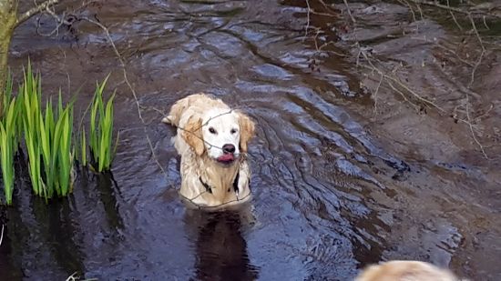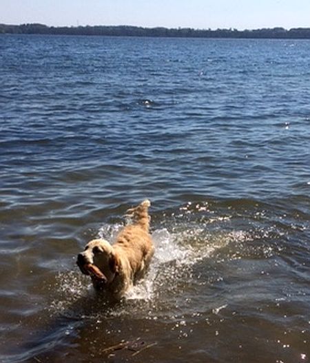 Allegra apportiert aus dem Wasser